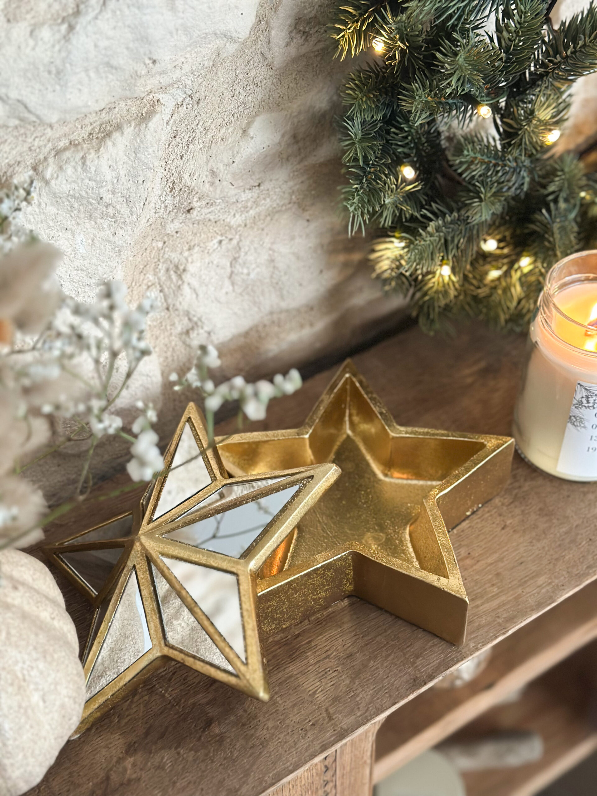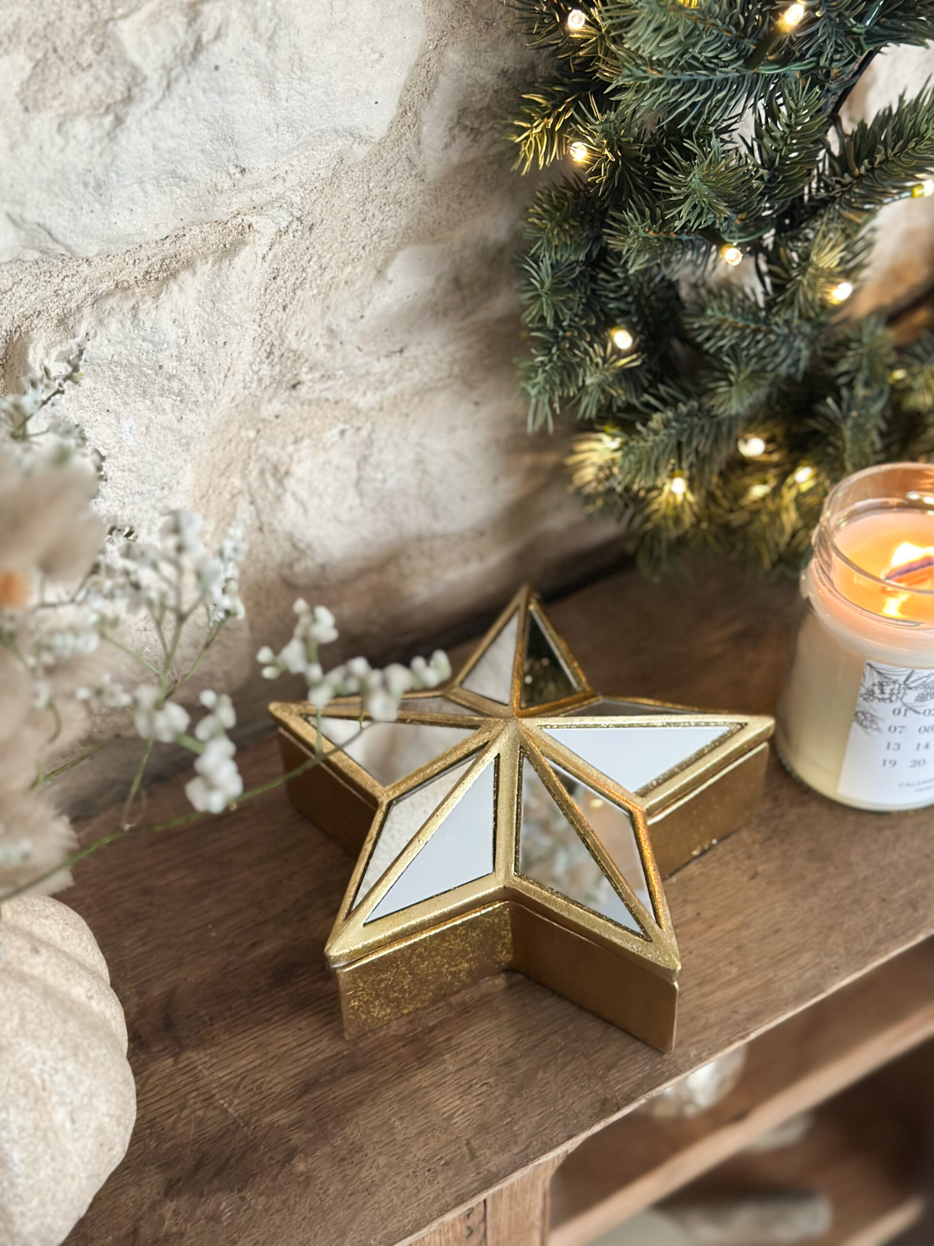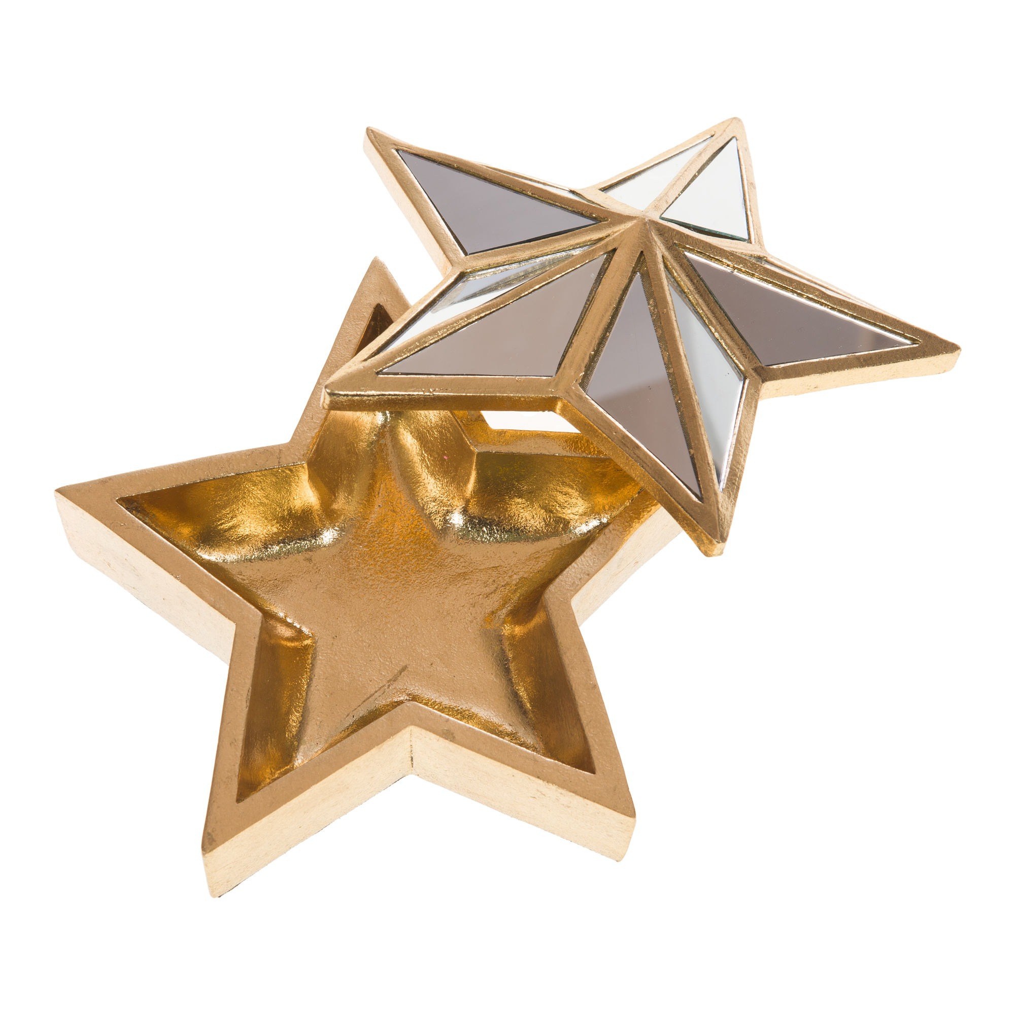 Coup de coeur pour cette jolie boîte décorative en forme d’étoile, dotée d’un cadre doré et de panneaux en miroir. Compacte et légère, elle s’intègre facilement dans votre intérieur.