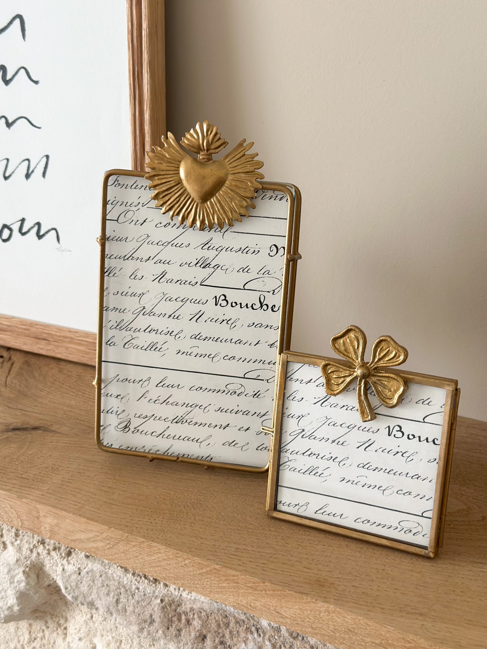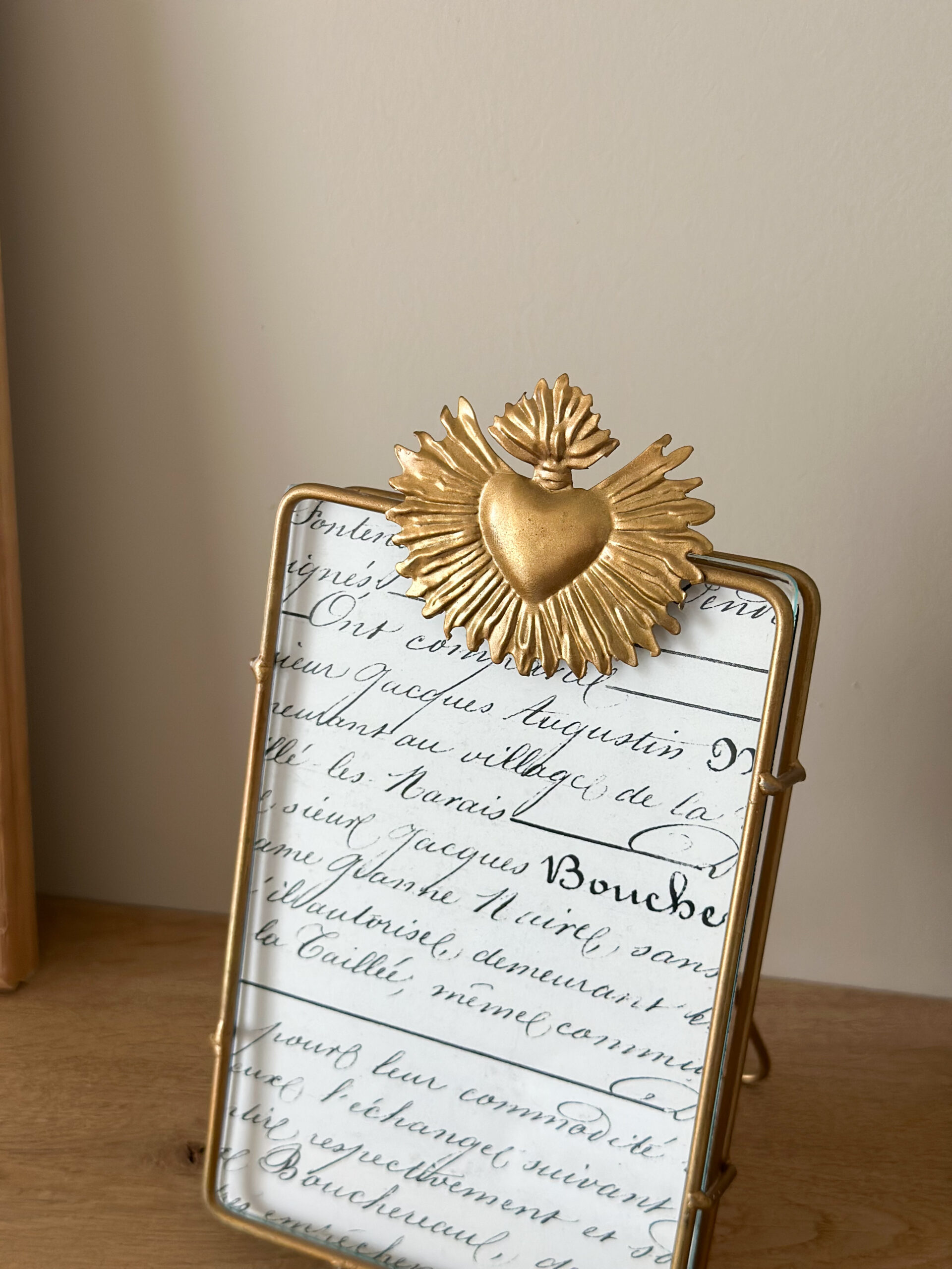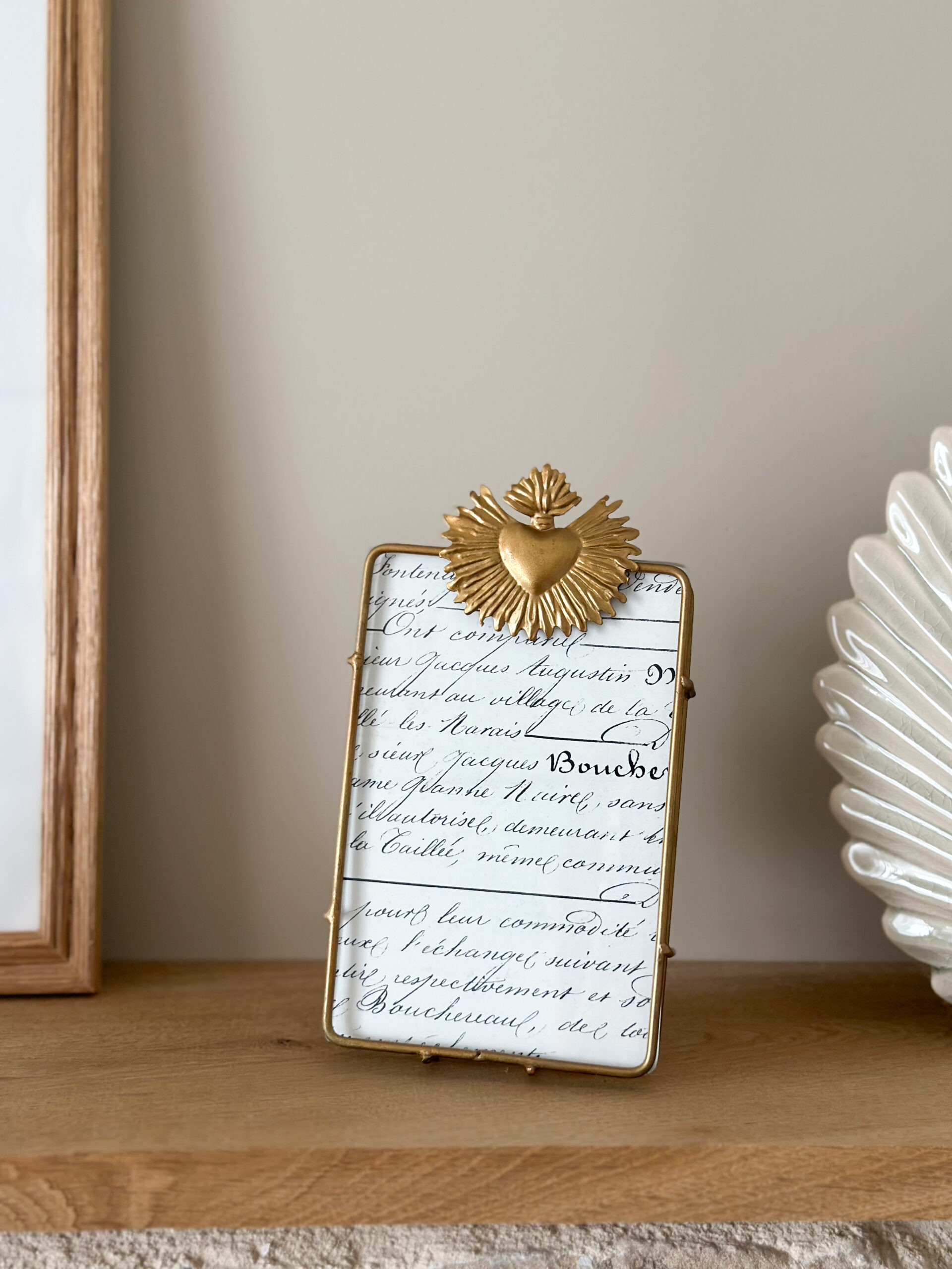 Sublimez vos souvenirs avec ce cadre photo au look romantique : métal doré et ex voto décoratif pour une touche vintage-chic. Idéal sur une commode, une étagère ou une table de chevet, il met en valeur vos photos préférées avec élégance.