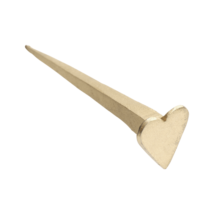 Clou décoratif doré en forme de coeur. Idéal pour y surprendre un cadre, un panier..