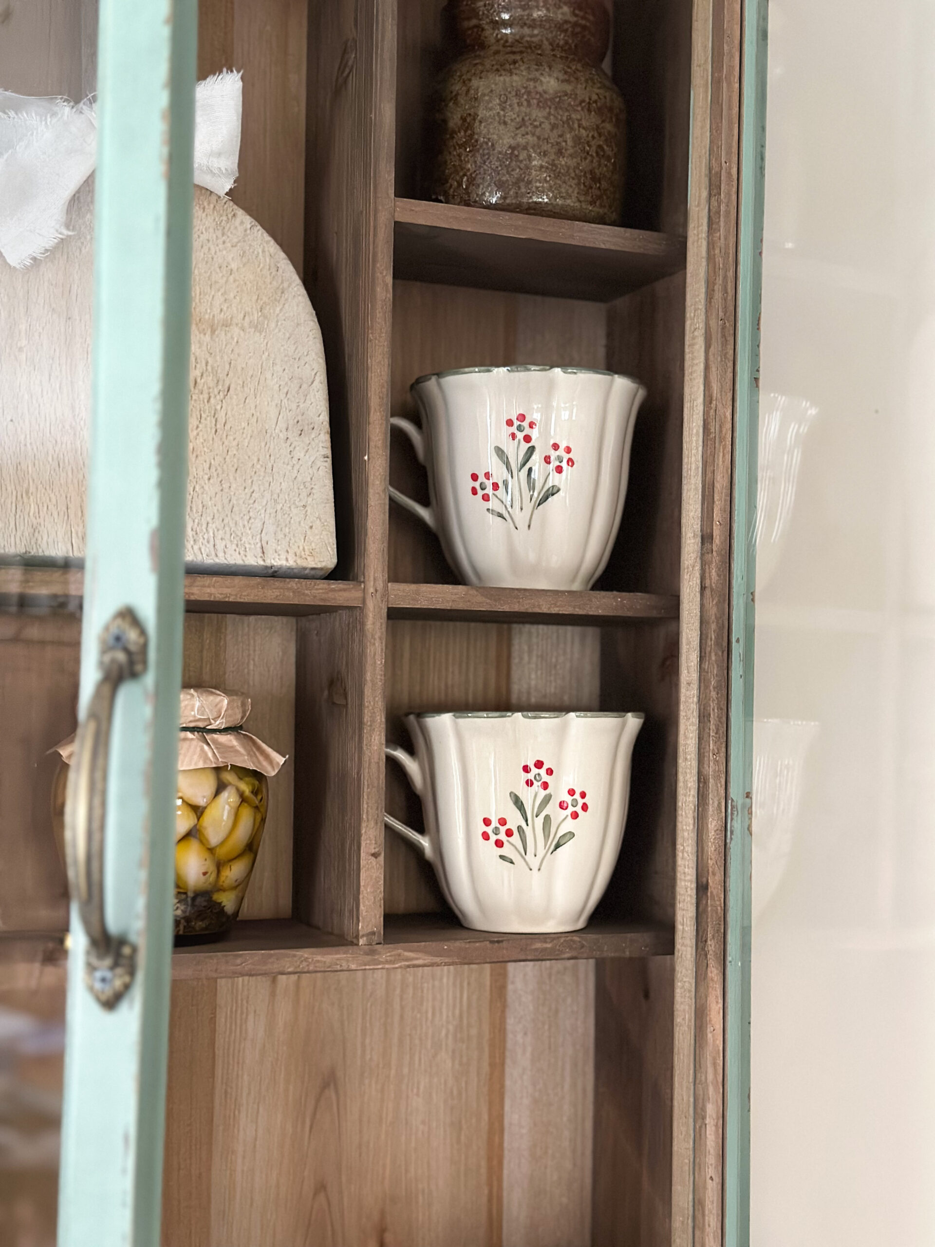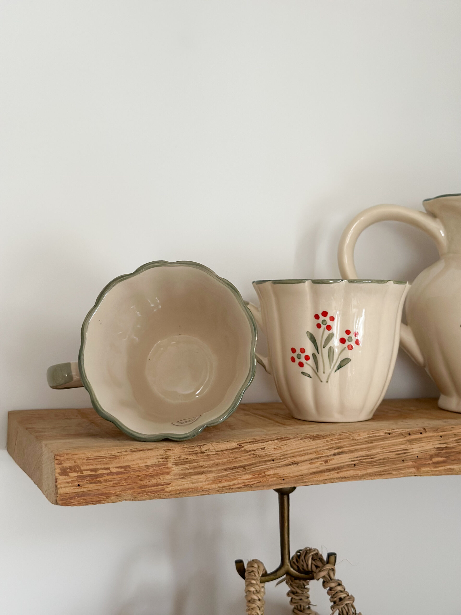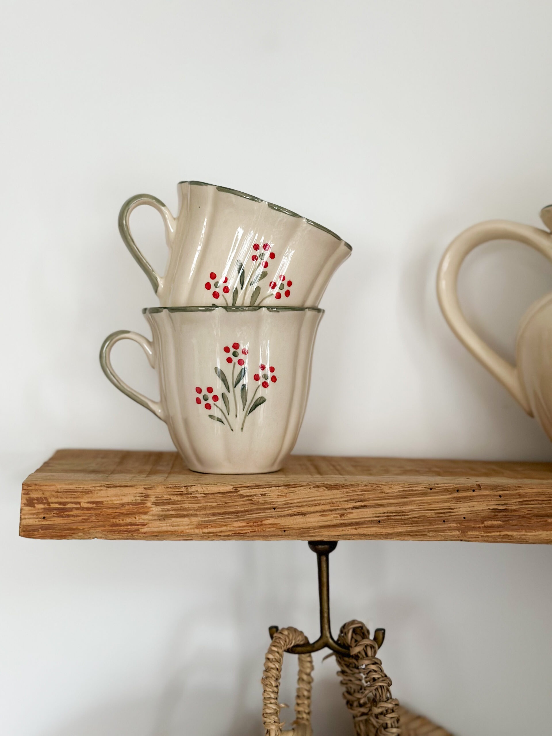 Coup de coeur pour cette magnifique tasse en grès avec un motif fleuri, décoratifs à l’ancienne, campagne chic.