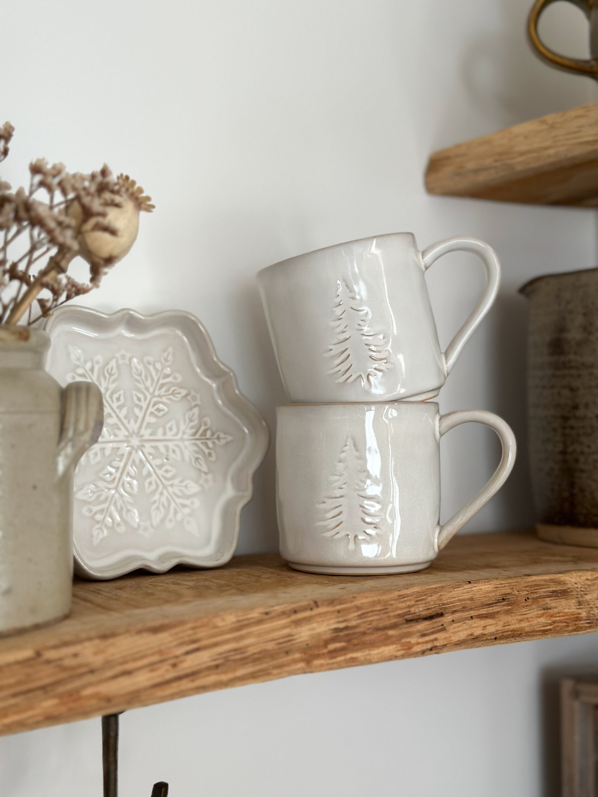 Coup de coeur pour ce joli mug Winter, fabriquée en grès dans des nuances claires. Ce mug arbore un motif en relief, d’un sapin inspiré par la belle nature de l’hiver.