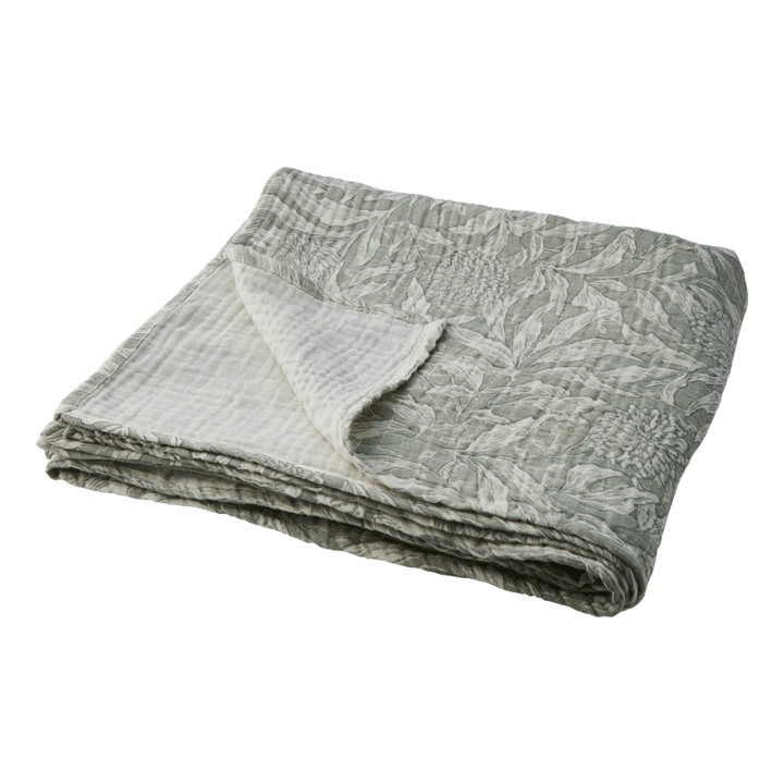 Coup de coeur pour cette magnifique nappe en coton gaufré. Un très bel imprimé avec des feuilles et des fleurs ivoire et vert d’eau.