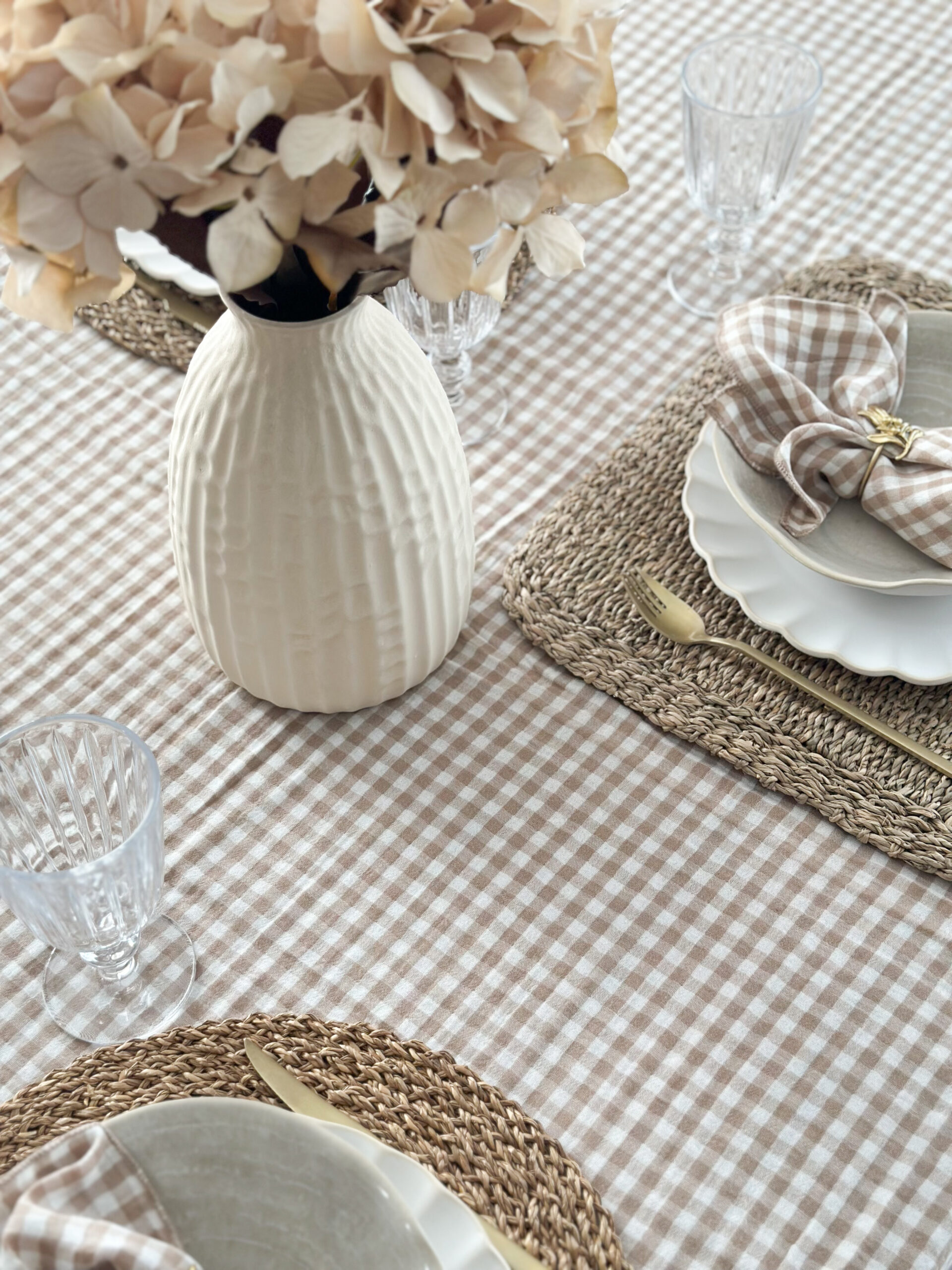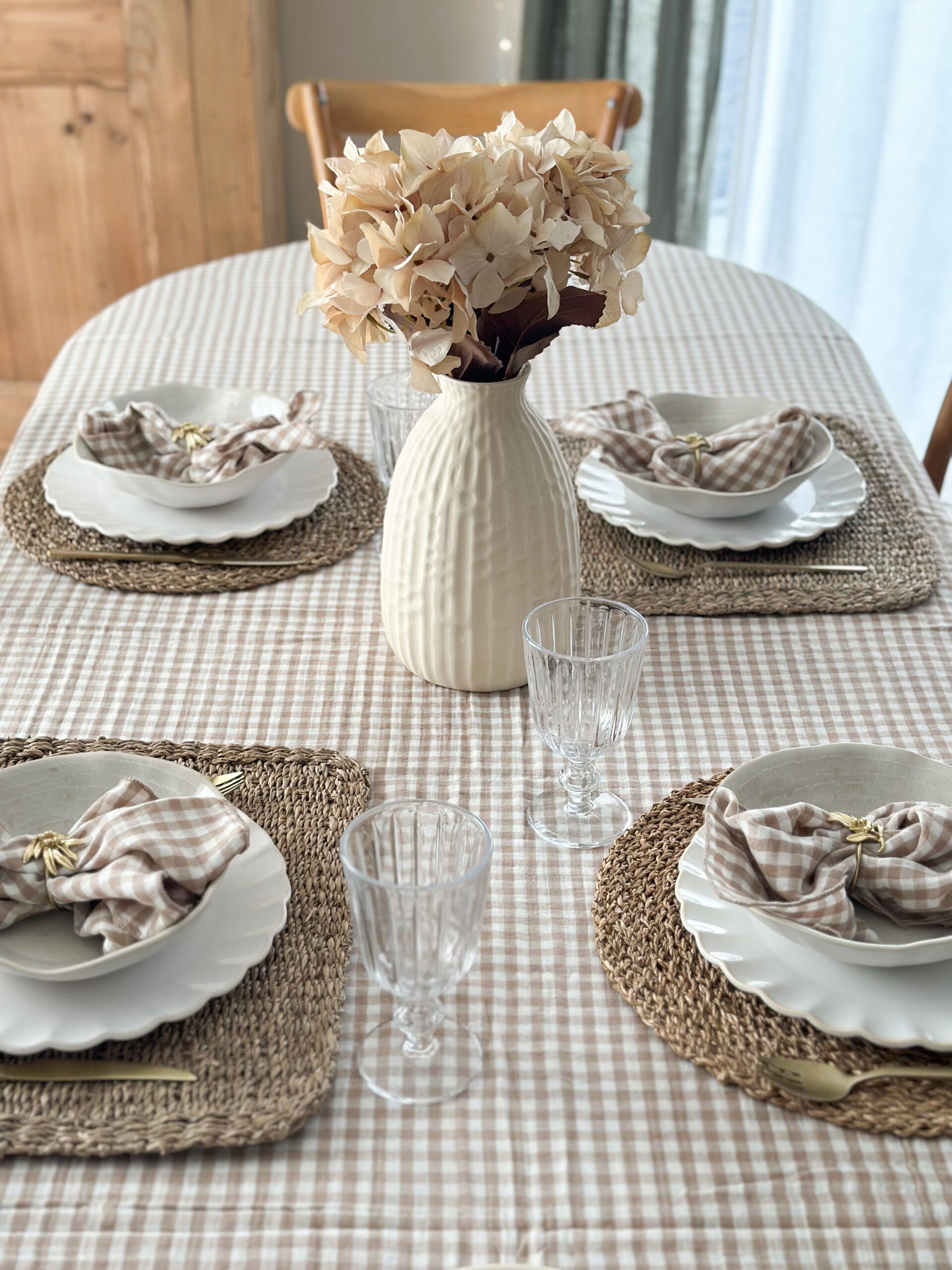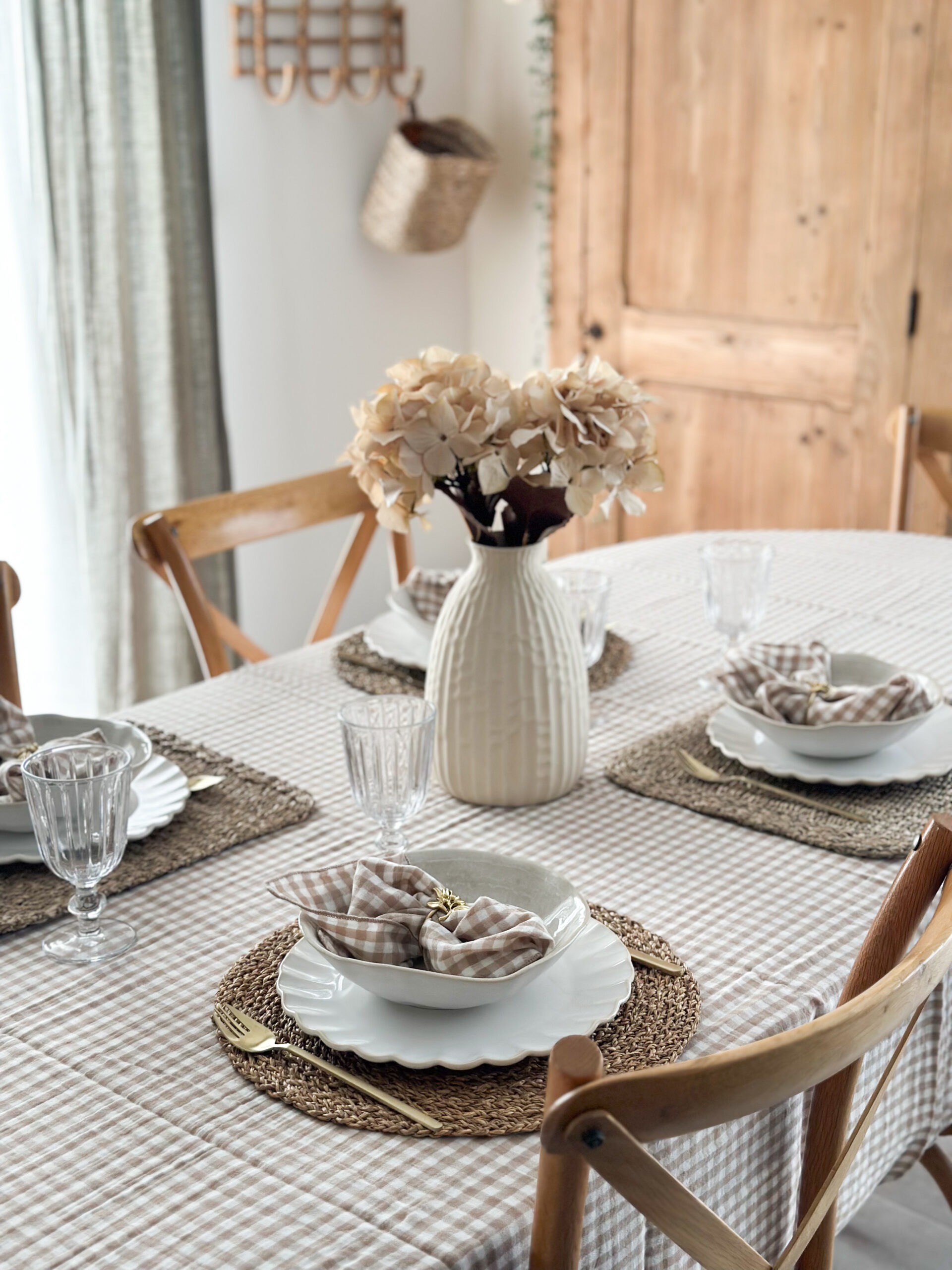 Coup de coeur pour cette magnifique nappe vichy beige foncé.