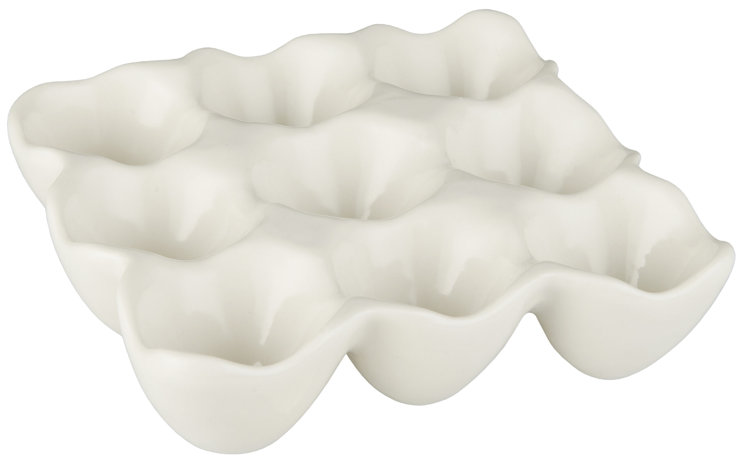 Conçu pour conserver et présenter vos œufs avec style, ce support en céramique lisse et brillante apporte une touche de sophistication à votre plan de travail ou à votre table de petit-déjeuner