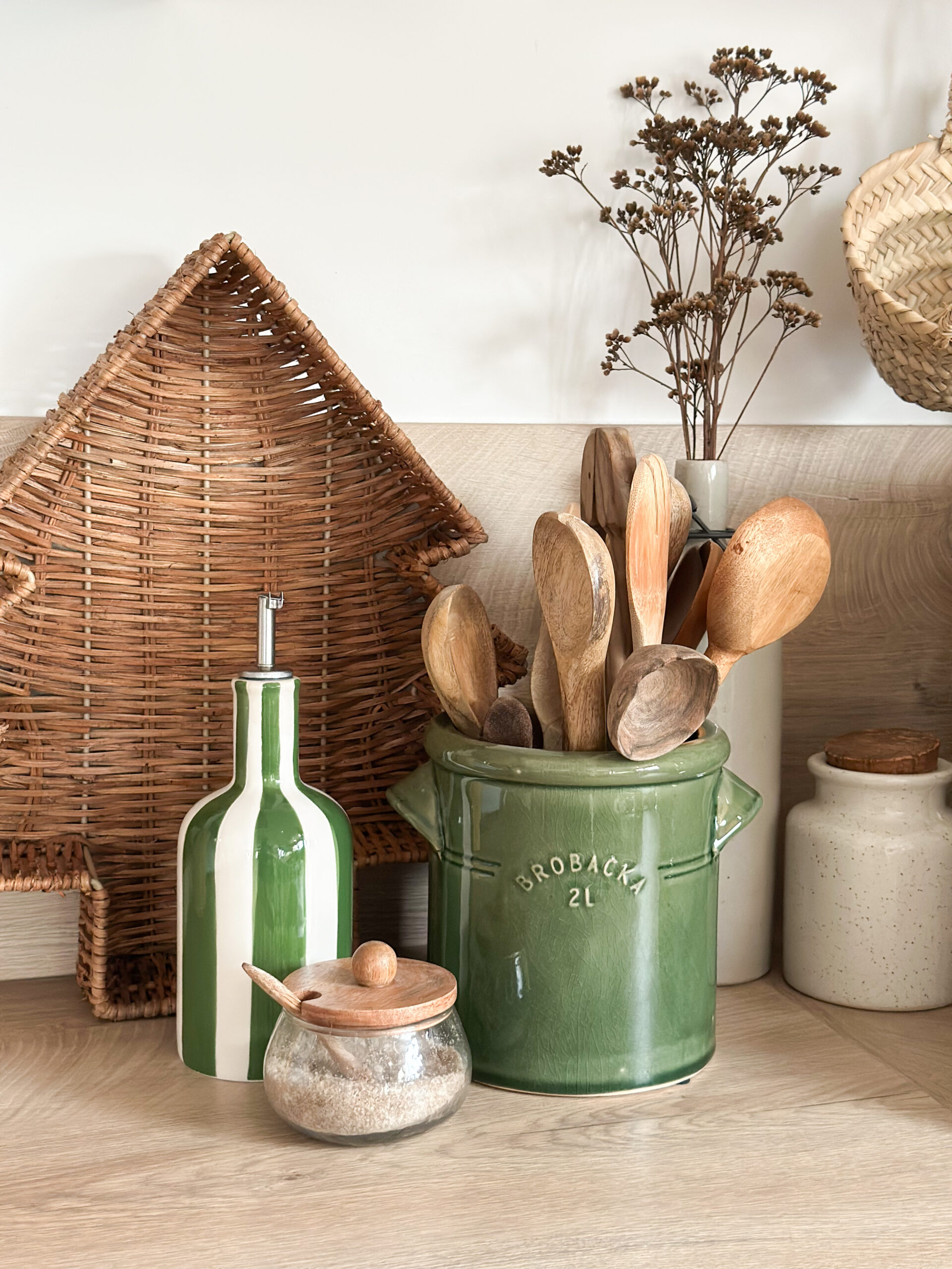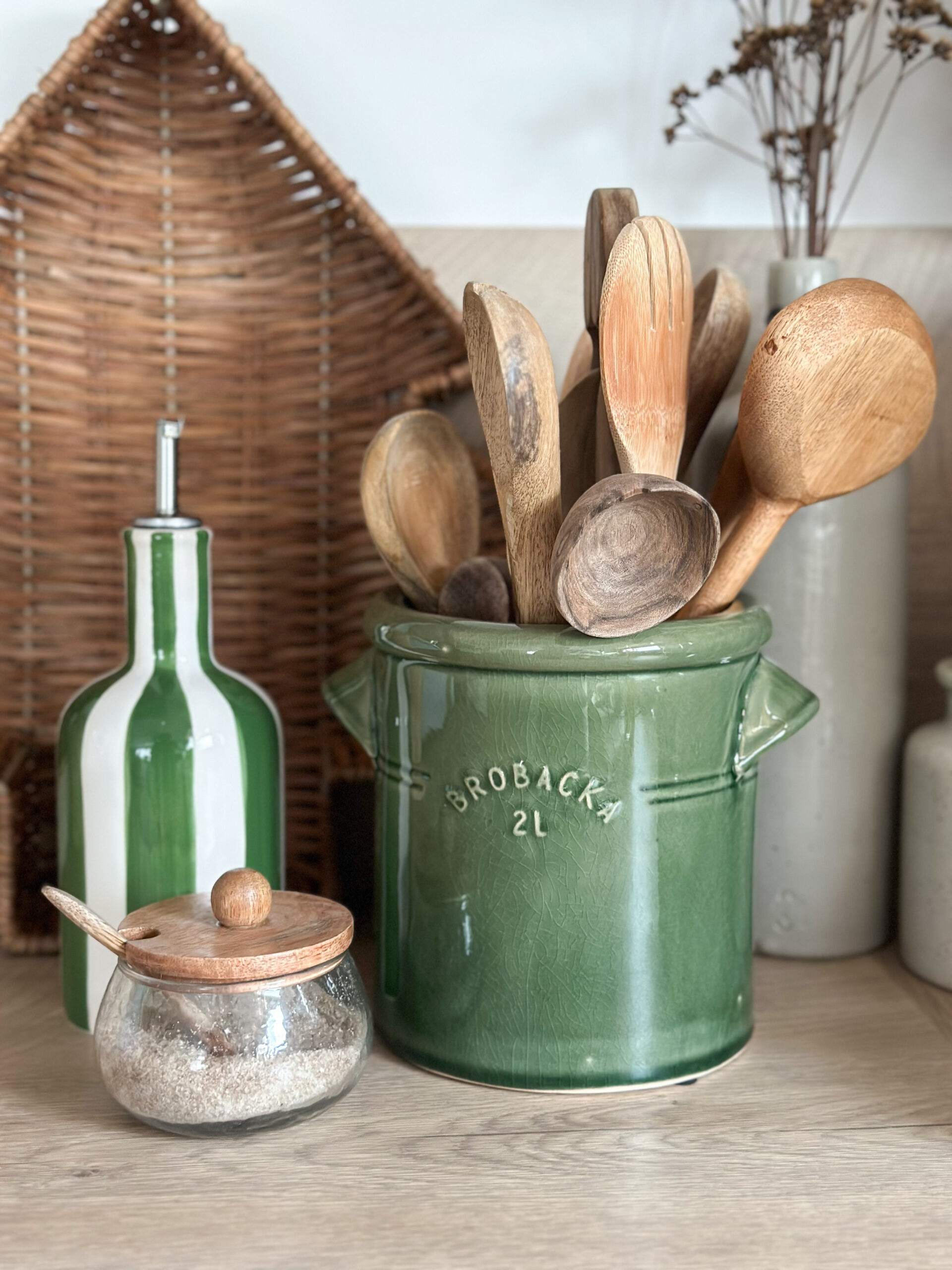 Magnifique pot en grès (modéle droit) d’une couleur vert foncé avec deux poignées, parfait pour un rangement pratique, comme pot à ustensiles et comme élément décoratif dans la maison.