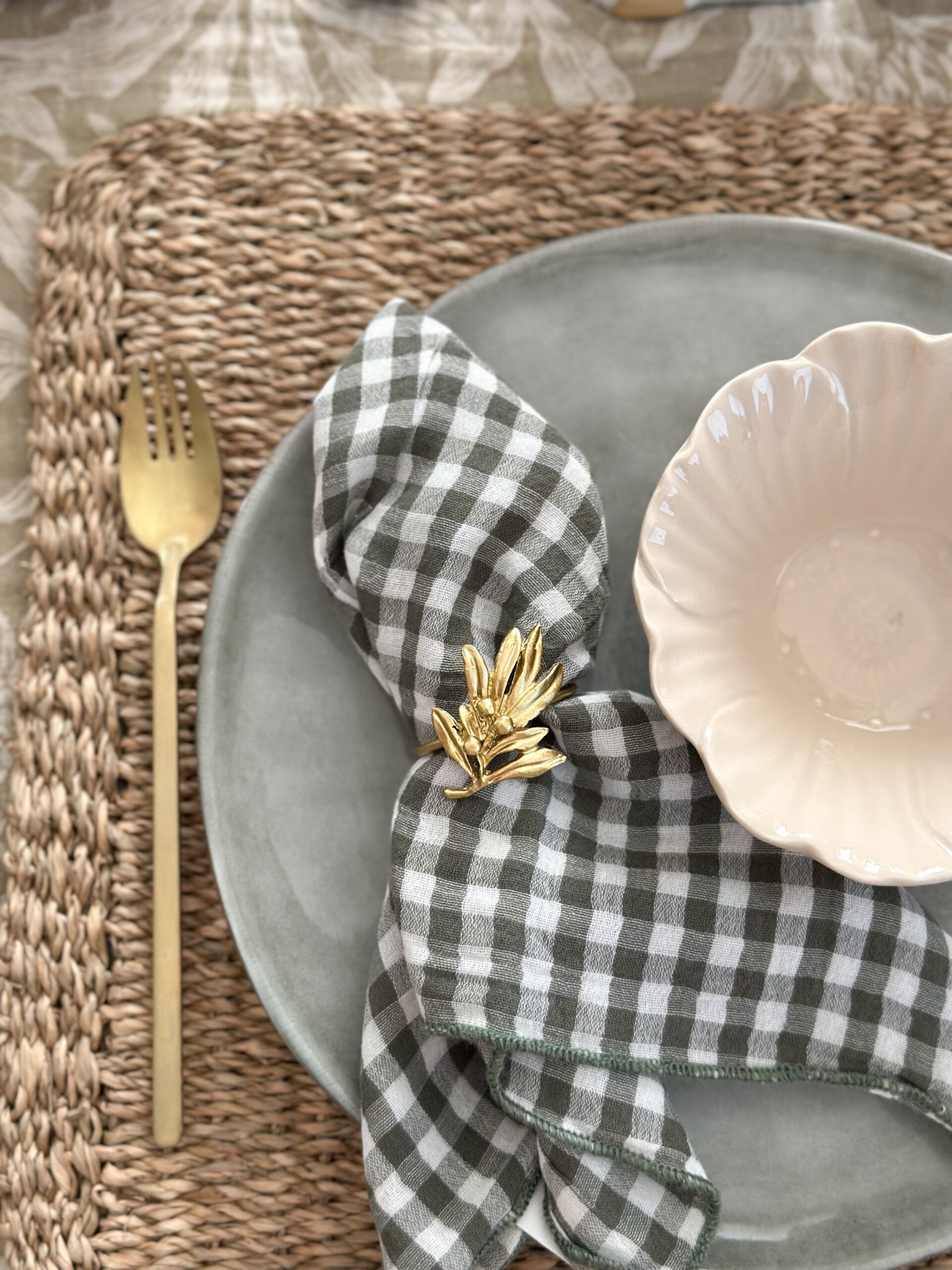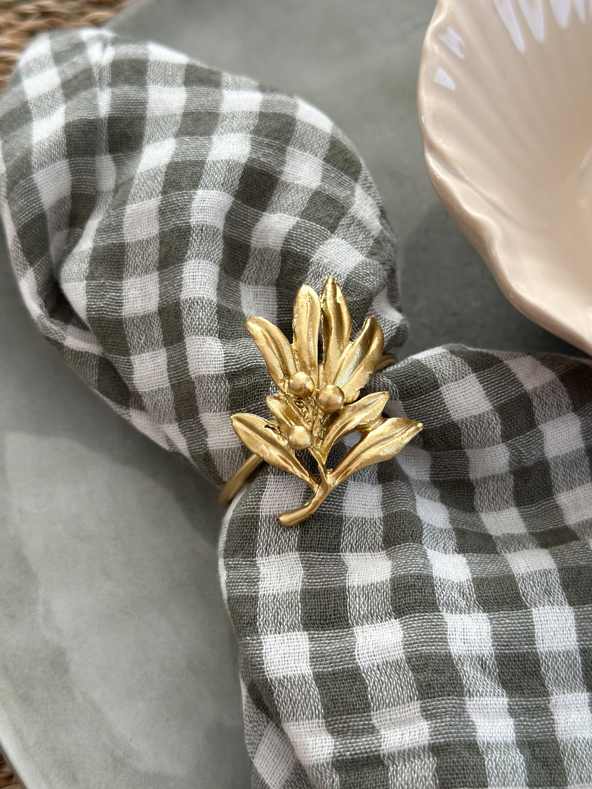 Coup de coeur pour ce joli rond de serviette en laiton doré avec une jolie branche de Gui.