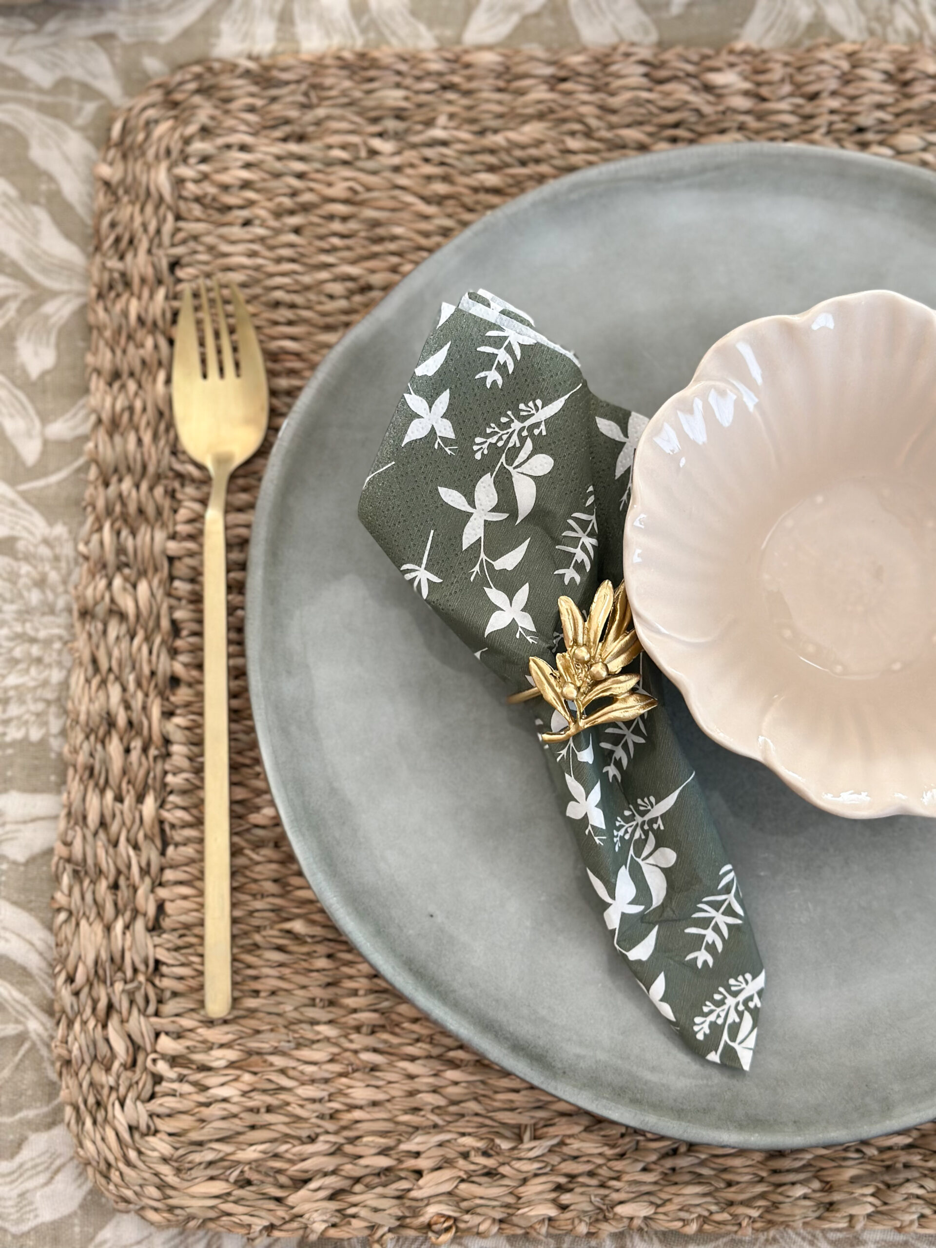 Rond de serviette et porte serviette en rotin également en vente sur le site.