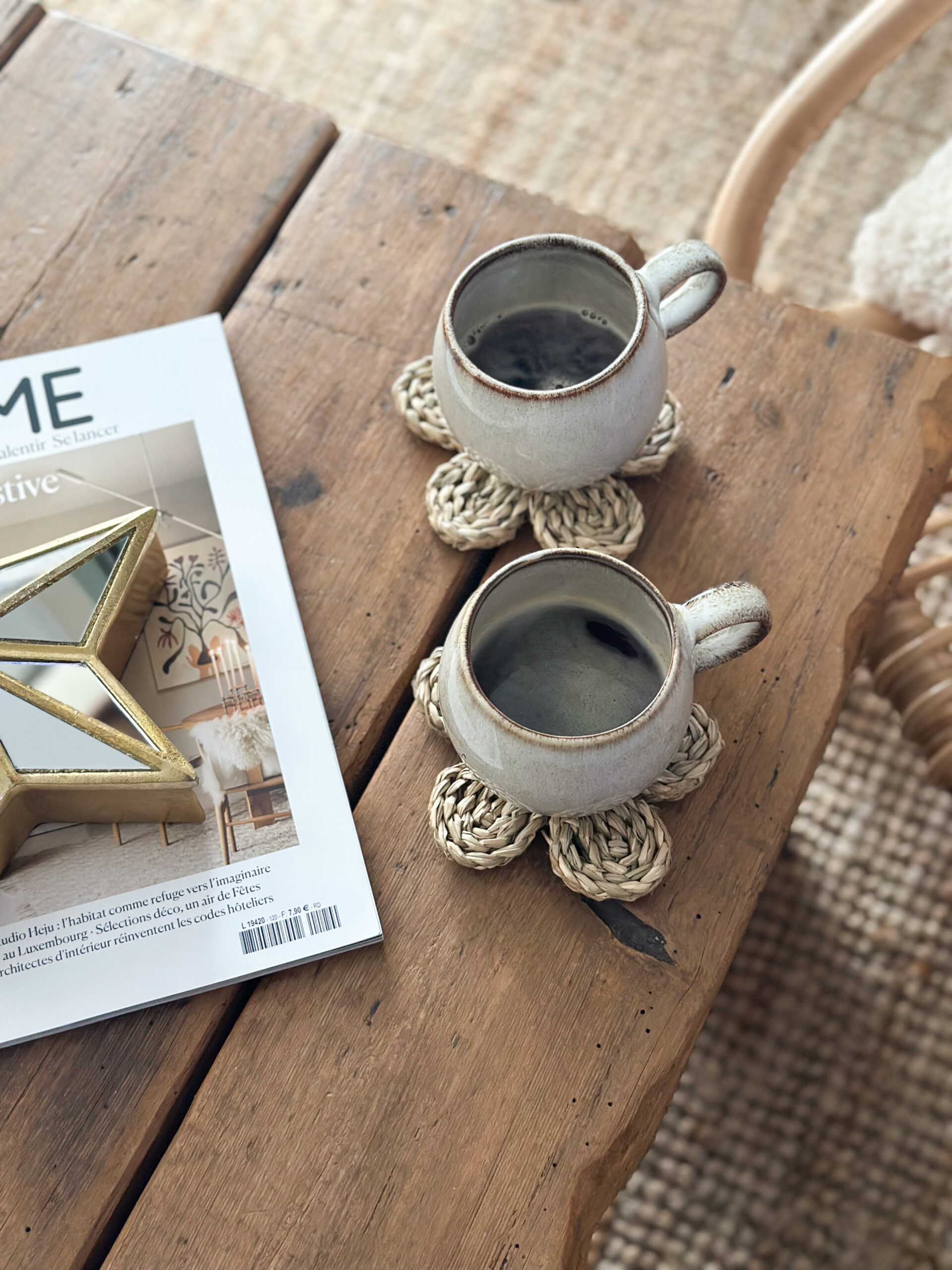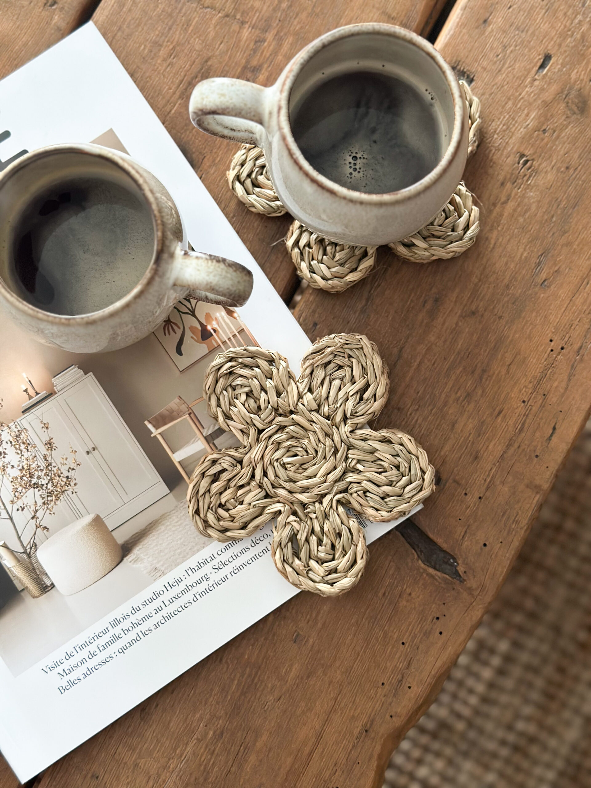 Coup de coeur pour ces jolis sous verre en jonc de mer. Vous pouvez également l’utiliser pour poser une bougie afin de protéger vos meubles de la chaleur.