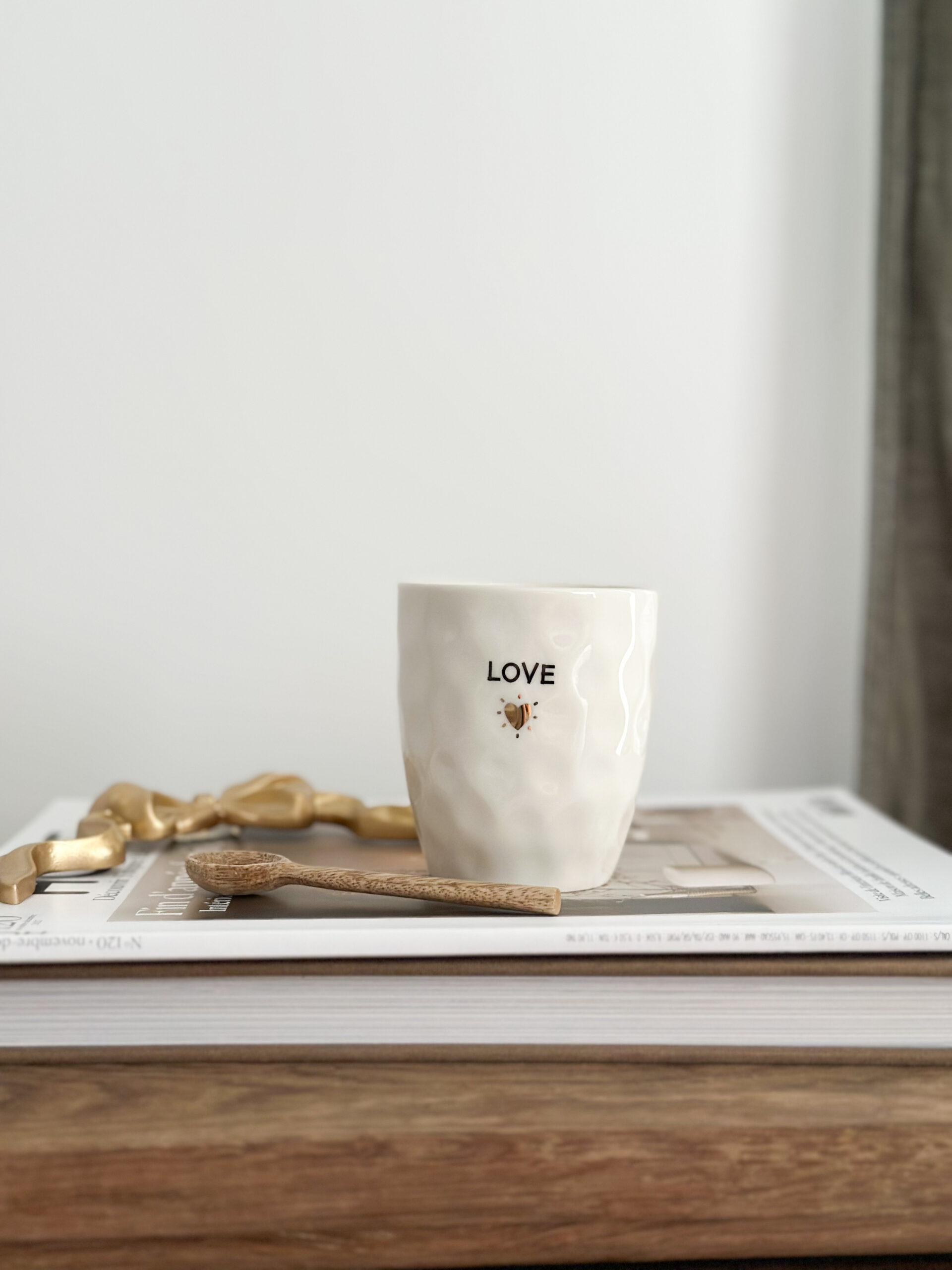 Apportez une note douce et lumineuse à vos pauses avec cette tasse “Love”, ornée d’un cœur doré à effet martelé. Son design délicat et raffiné en fait un bel objet du quotidien, parfait pour sublimer une table ou offrir un cadeau plein de charme.