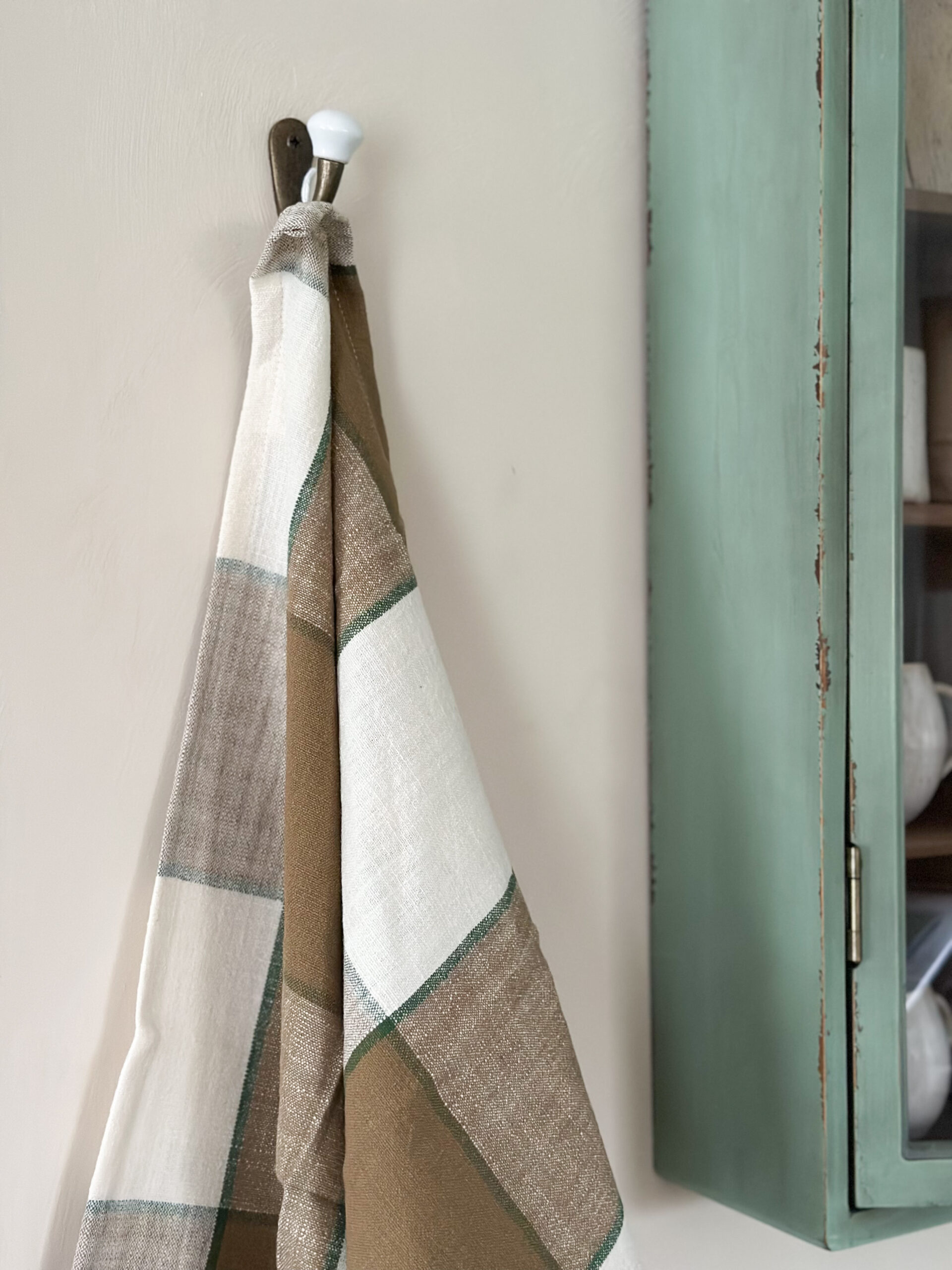 Ce joli torchon de cuisine à carreaux, fabriqué à partir de coton tissé durable, mélange des teintes blanc cassé, tapenade et verte. Il offre un style intemporel pour n’importe quelle cuisine.